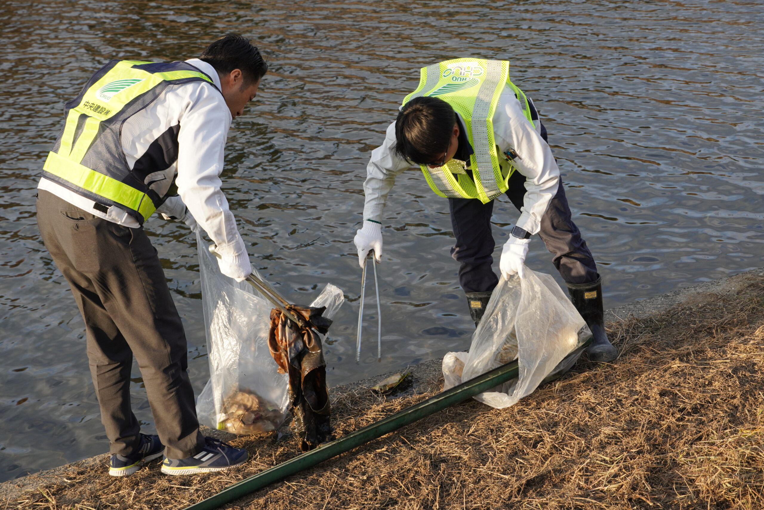 中央建設では、毎年恒例の「吉岡川清掃活動」を行っています。
