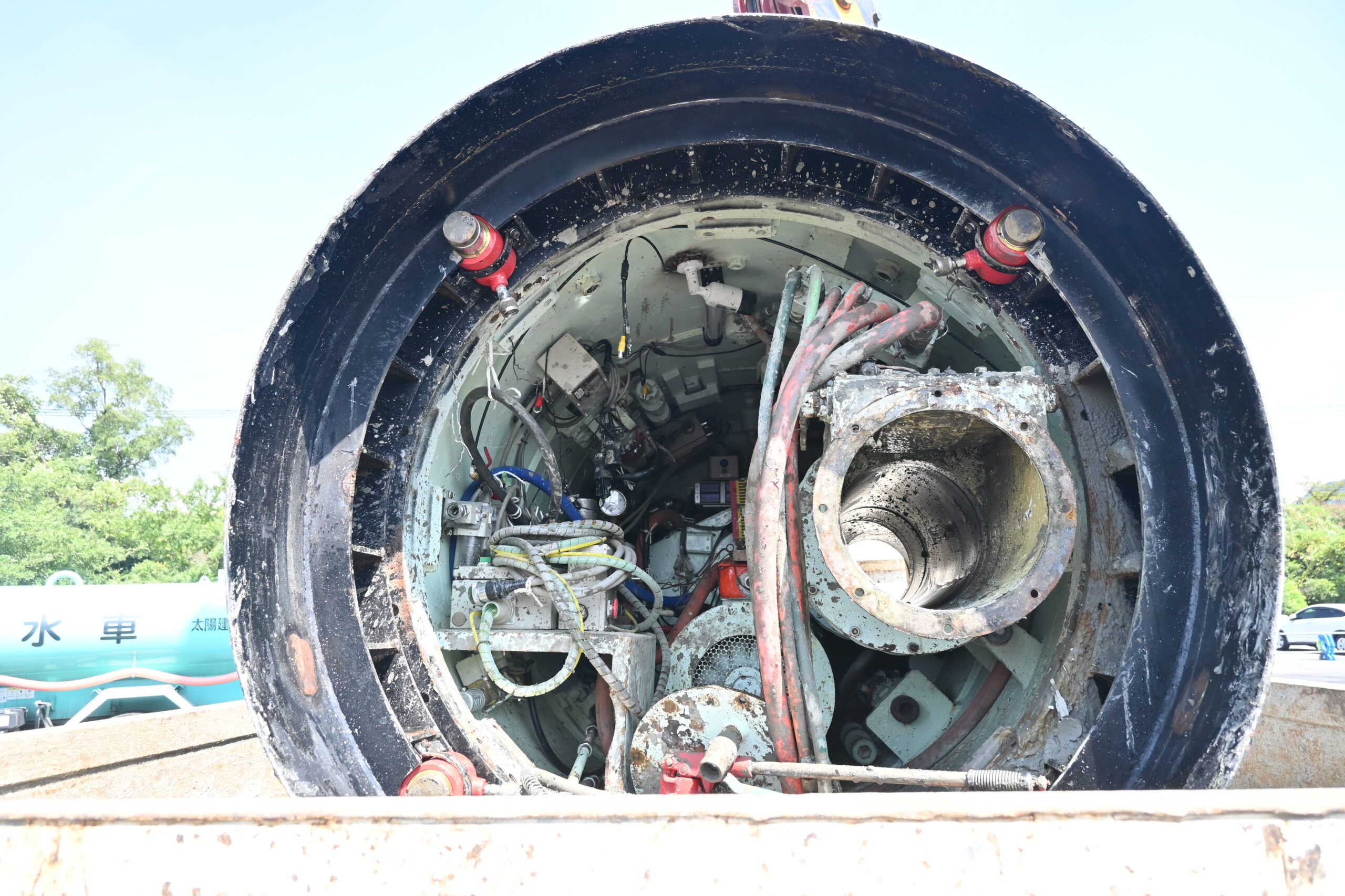 また以下写真は、回収中の様子と回収後の掘進機内部の様子をご覧いただけます。掘進機の内部には、各種装置が搭載されており、「高精度・高効率・高安全性」を実現しています。