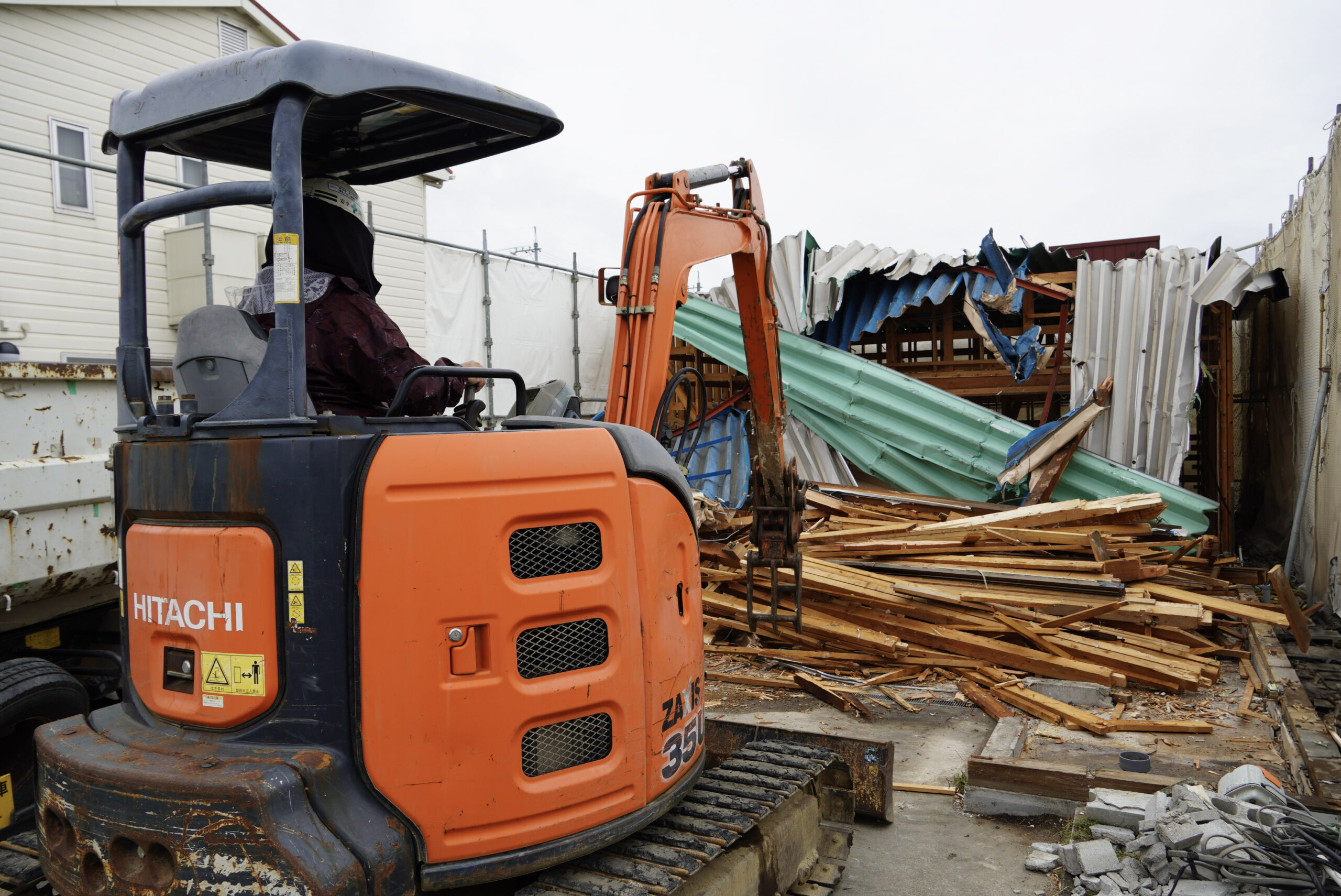 小型重機を活用した本体解体