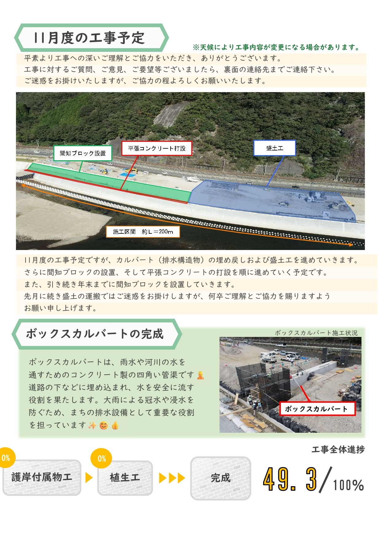 ボックスカルバートの役割について、11月度の工事予定等の詳細は、画像またはInstagramにてご覧ください👀💓