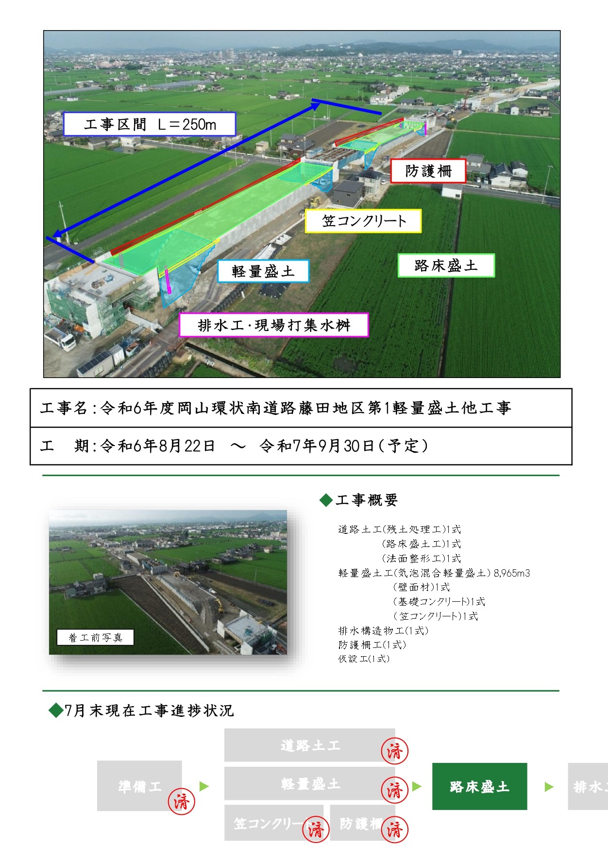令和6年度岡山環状南道路藤田地区第1軽量盛土他工事(以下、藤田地区第1軽量盛土工事)の現場情報誌8月号を発行しました