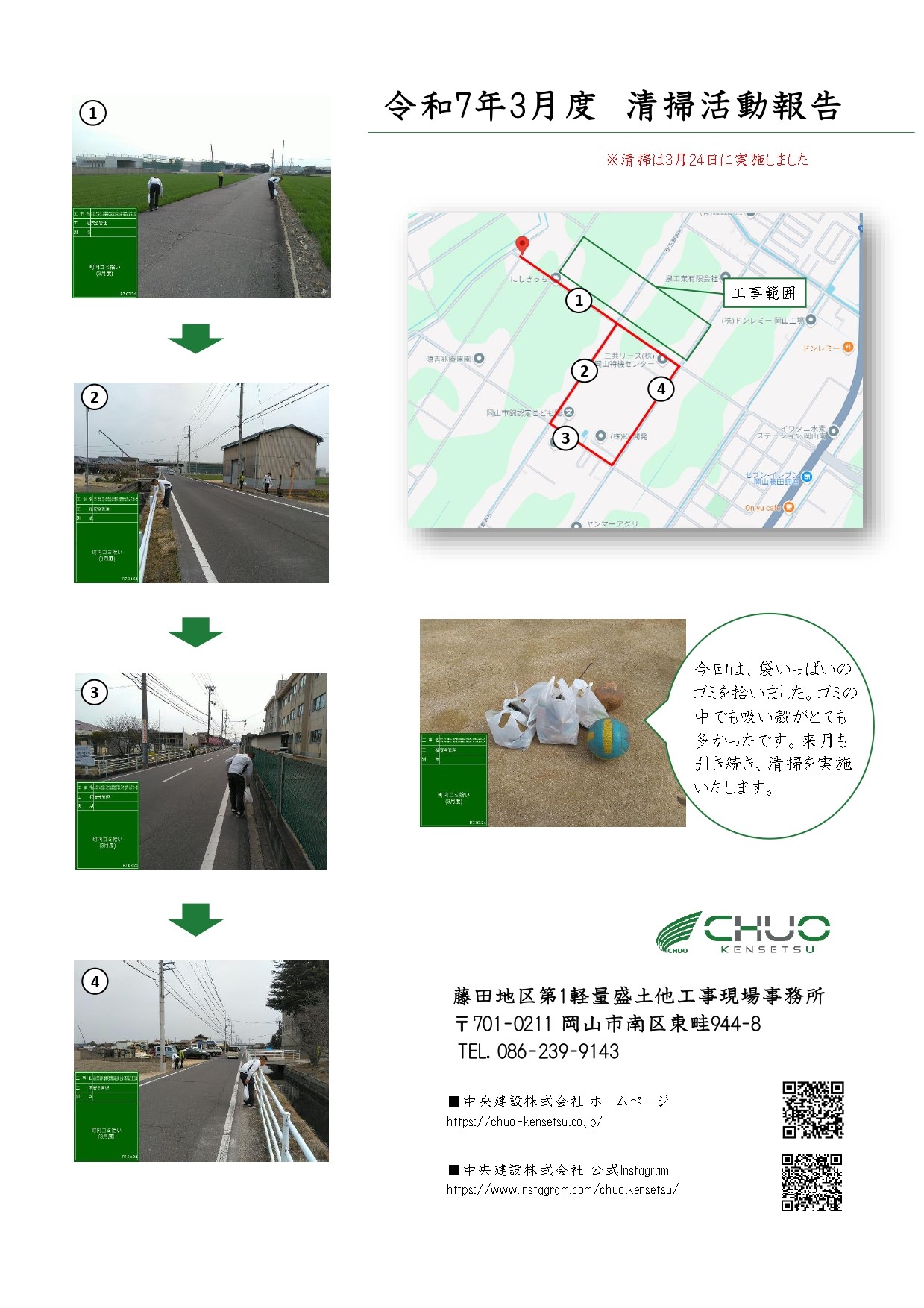 令和6年度岡山環状南道路藤田地区第1軽量盛土他工事(以下、藤田地区第1軽量盛土工事)の現場情報誌4月号を発行しました✨