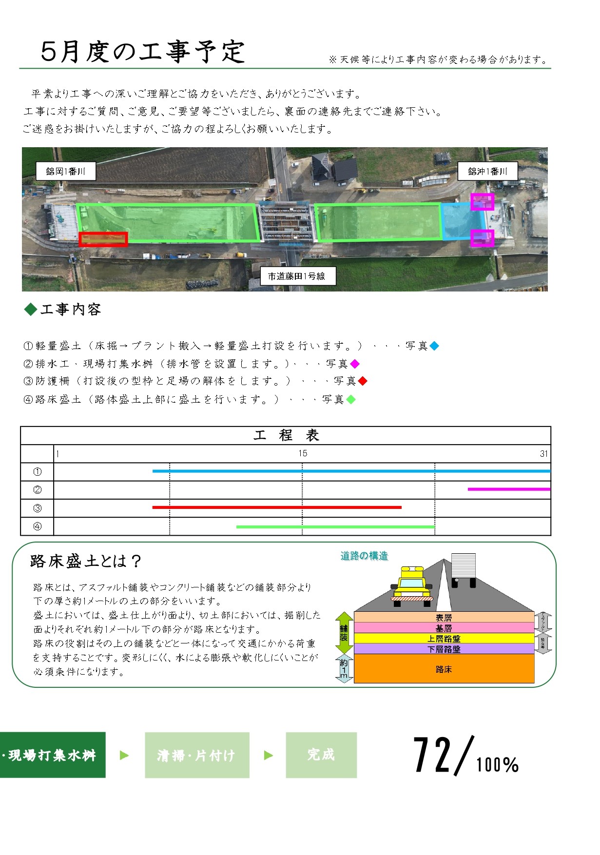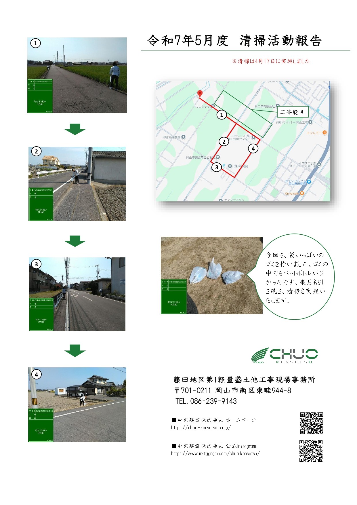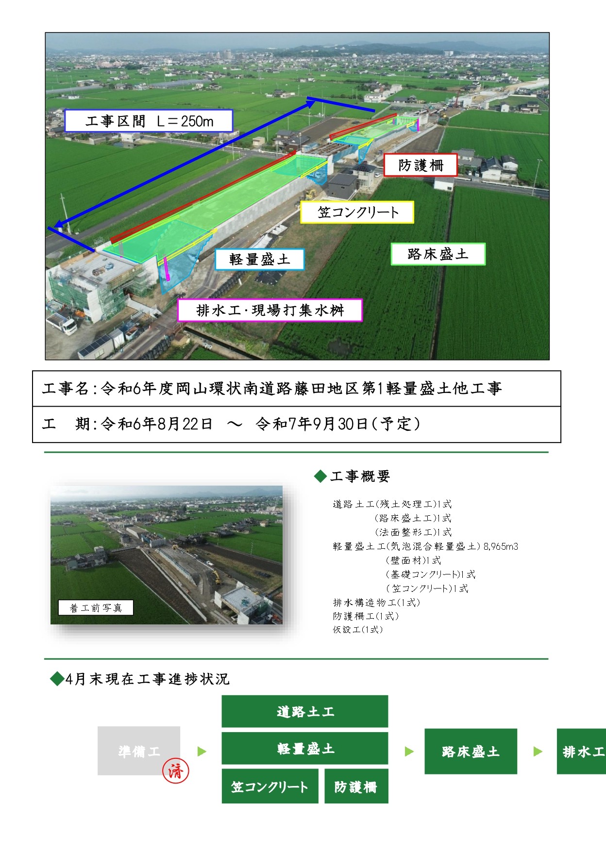 令和6年度岡山環状南道路藤田地区第1軽量盛土他工事(以下、藤田地区第1軽量盛土工事)の現場情報誌5月号を発行しました✨