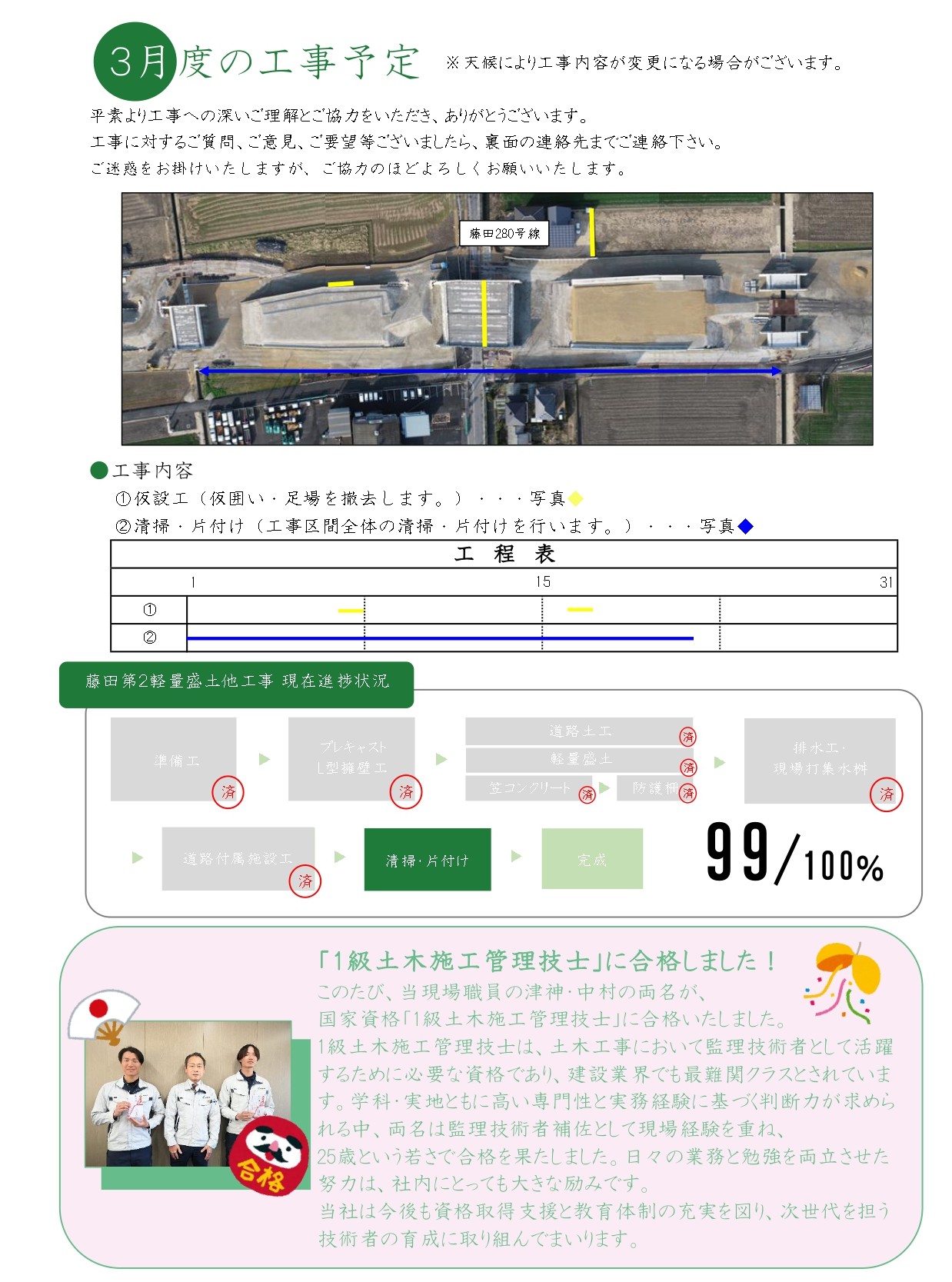 令和6年度岡山環状南道路藤田地区第2軽量盛土他工事(以下、藤田地区第2軽量盛土工事)の現場情報誌