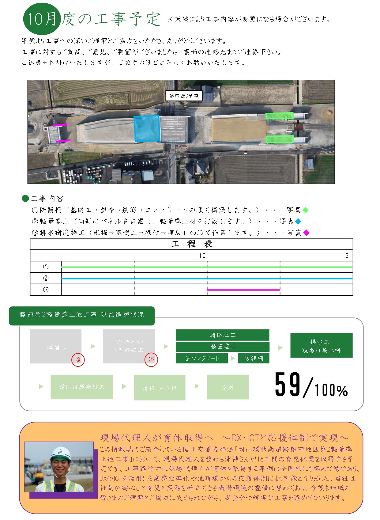 令和6年度岡山環状南道路藤田地区第2軽量盛土他工事(以下、藤田地区第2軽量盛土工事)の現場情報誌