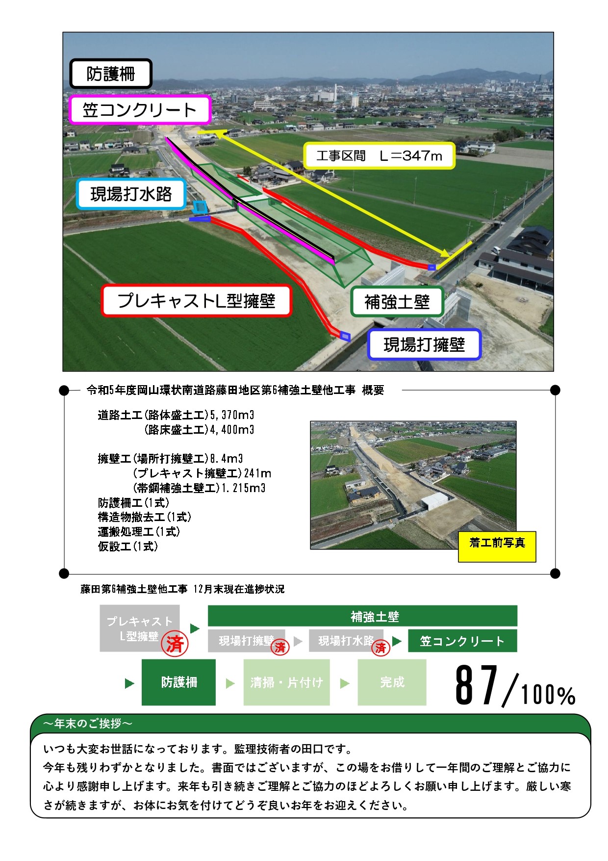 令和5年度岡山環状南道路藤田地区第6補強土壁他工事(以下、藤田地区第6補強土壁工事)の現場情報誌1月号を発行しました✨