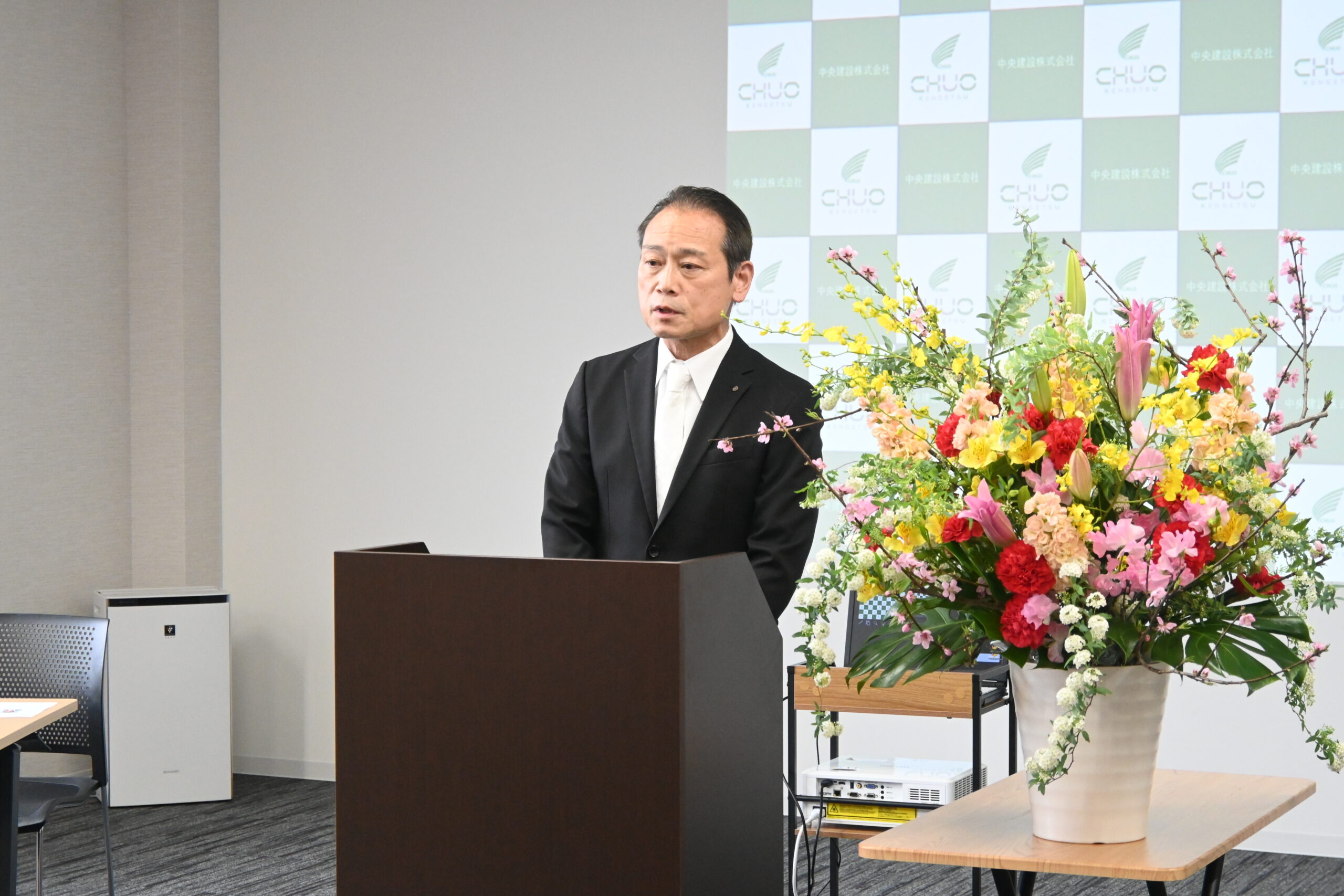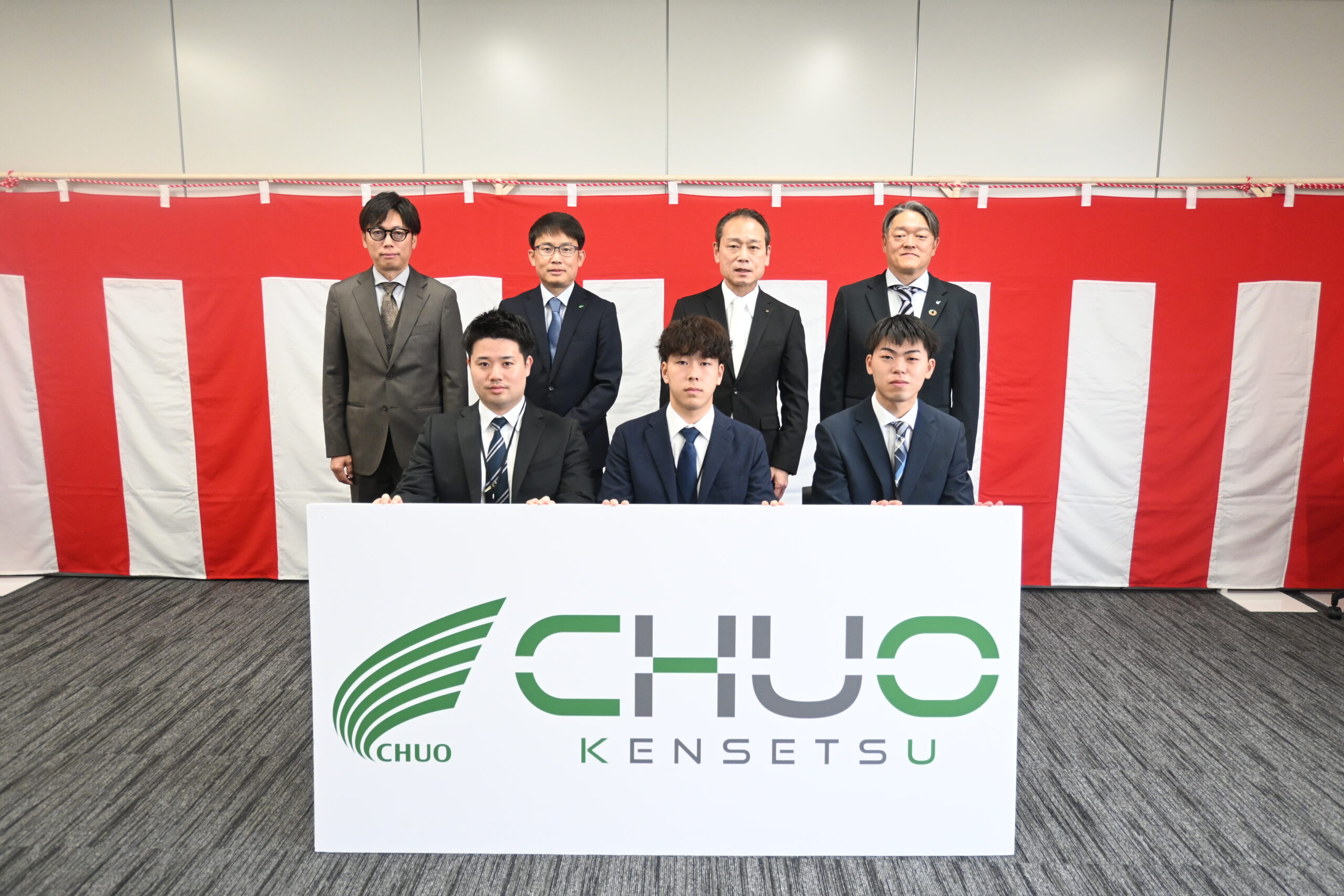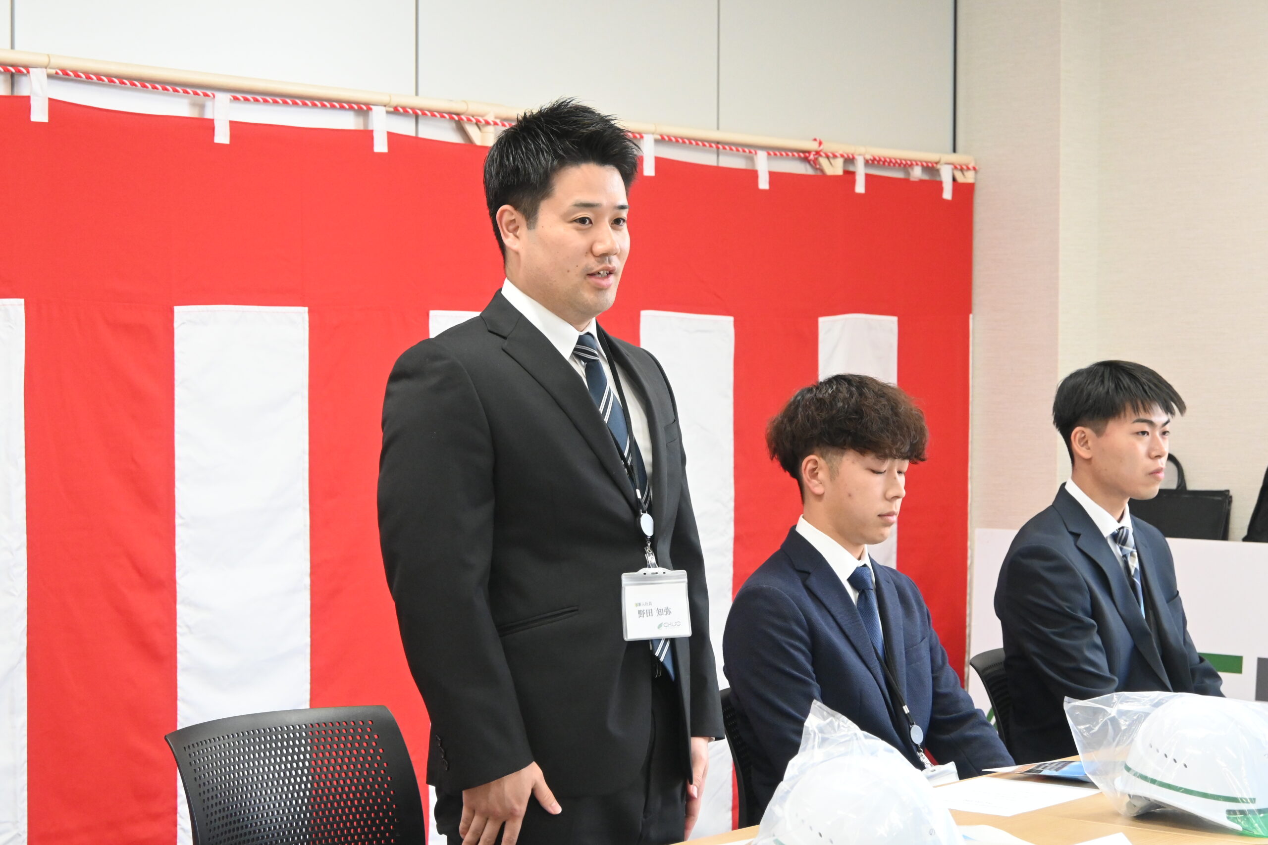あいにくの雨模様となった当日でしたが、その空気を引き締めるように、今年は3名の新入社員が新たに中央建設の一員として加わりました🫱🏻🫲🏻