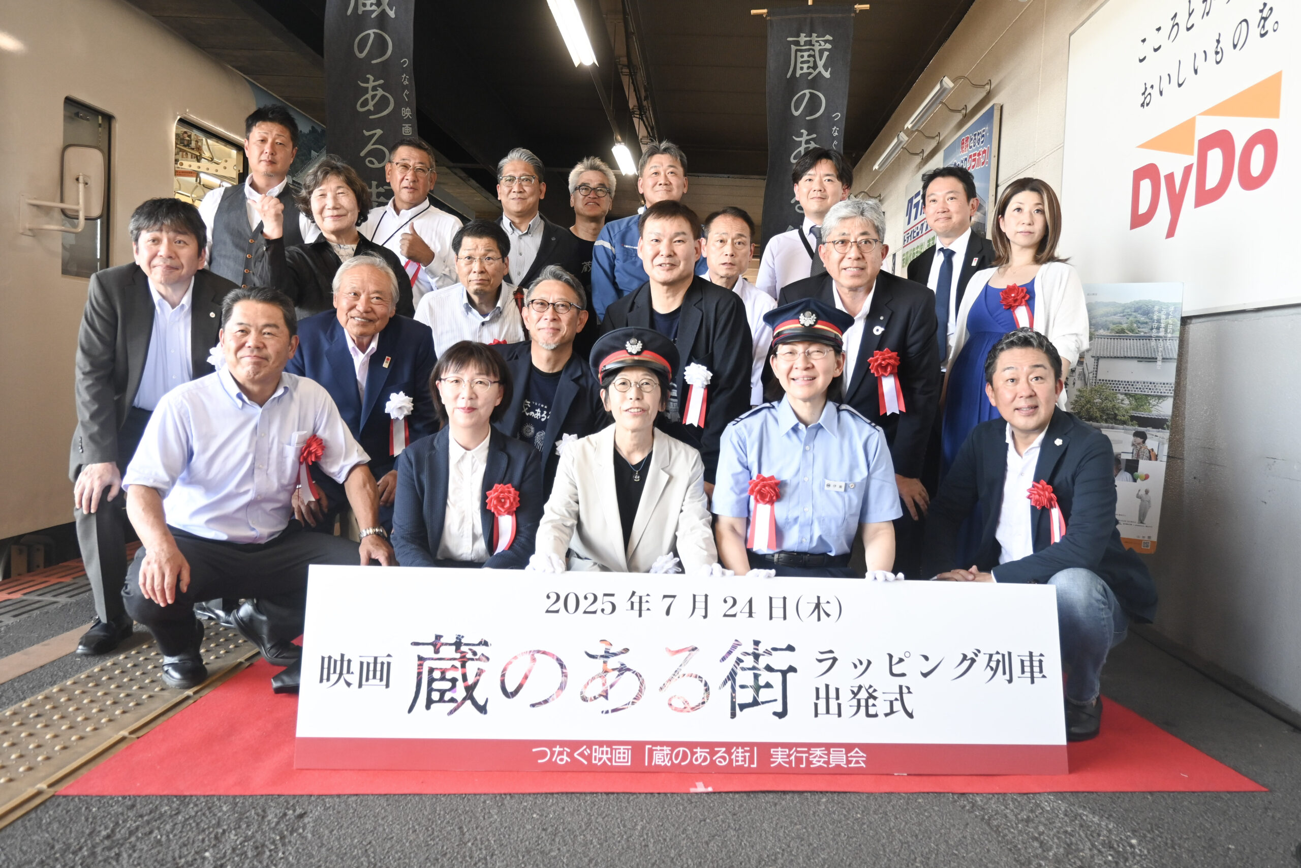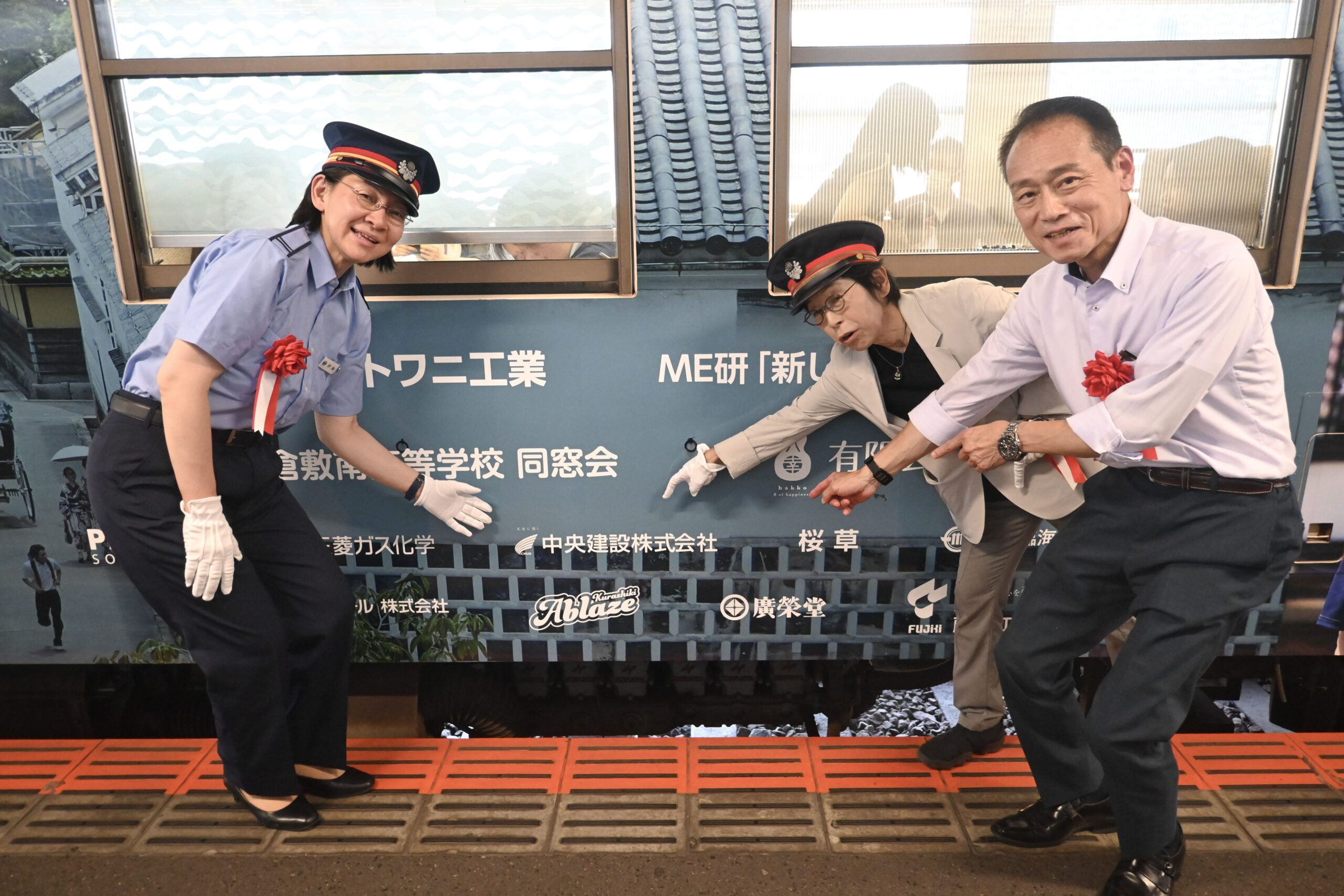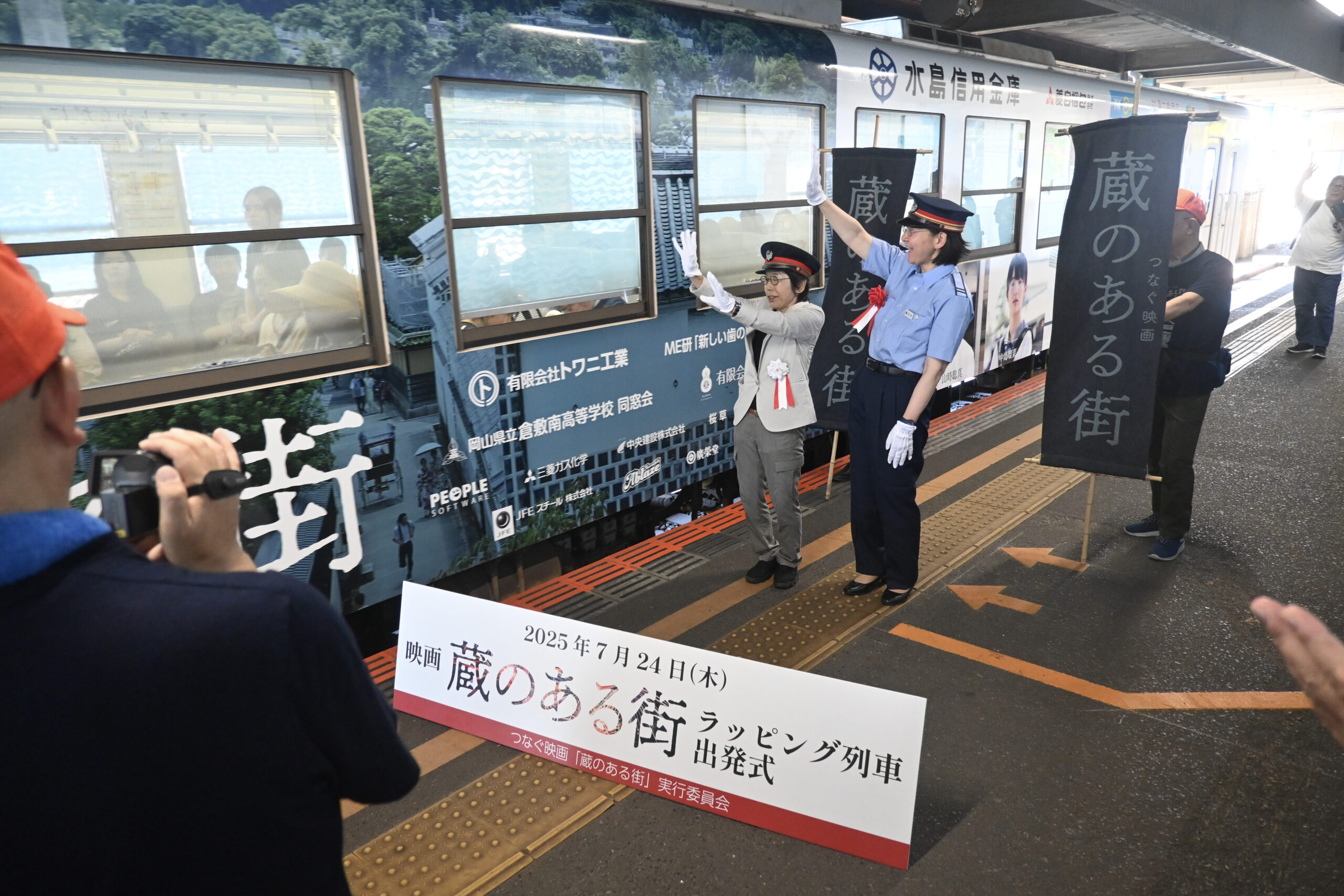 公開前日の7月24日(木)には、水島臨海鉄道 倉敷市駅にてラッピング列車の出発式が開催され、弊社代表取締役・井上も出席いたしました。
